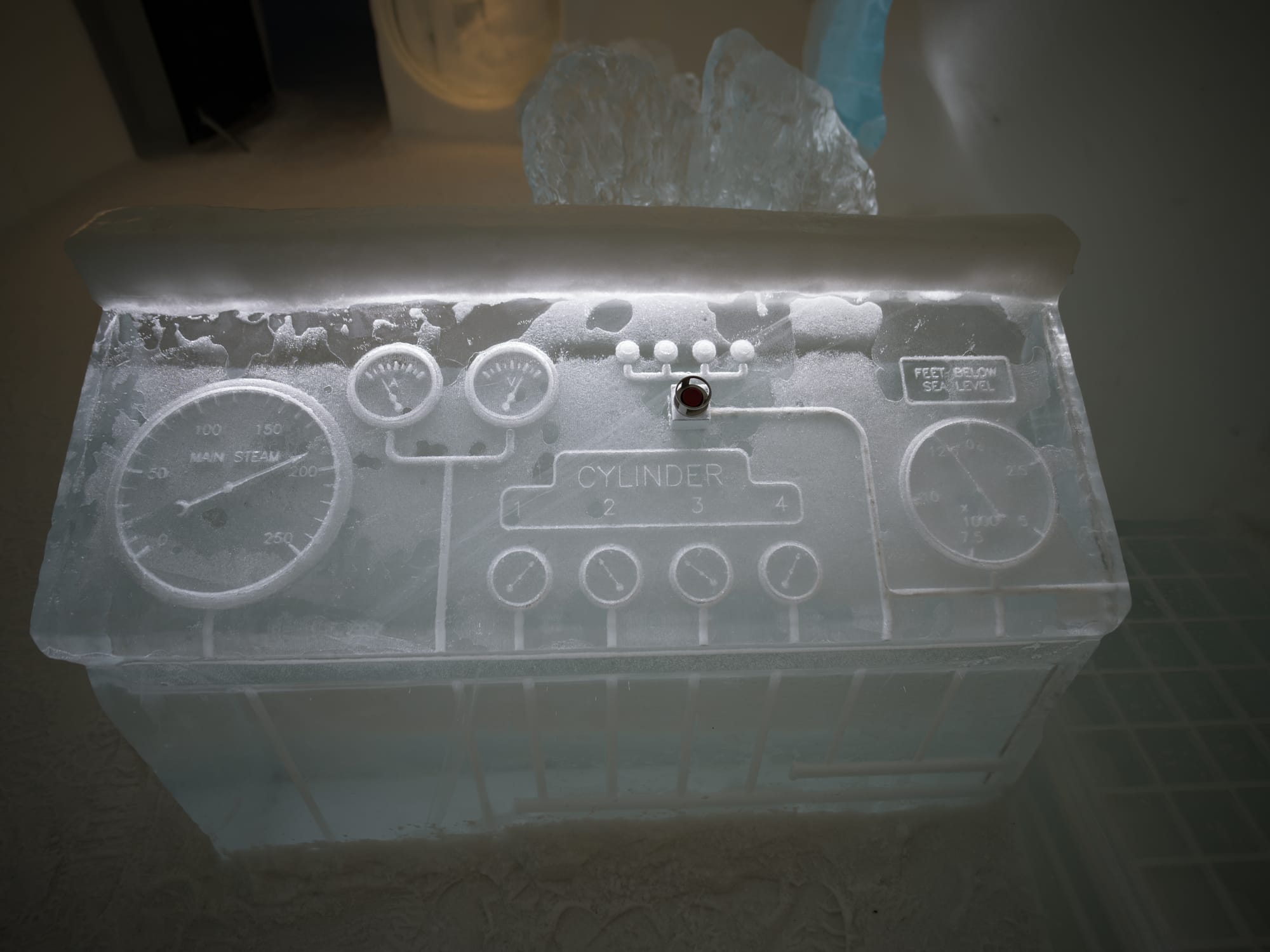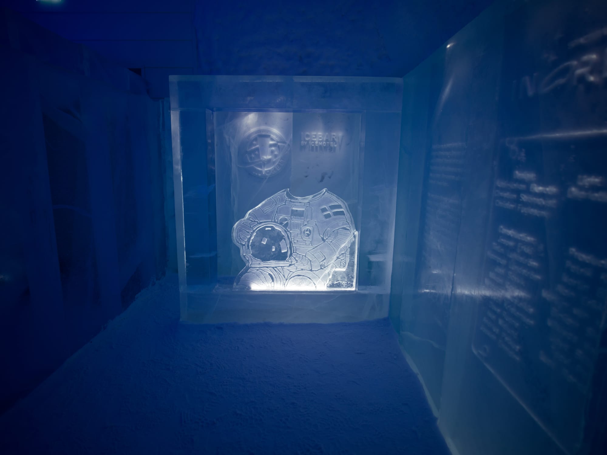 On entering the permanent ice hotel, we are greeted with the ice bar.