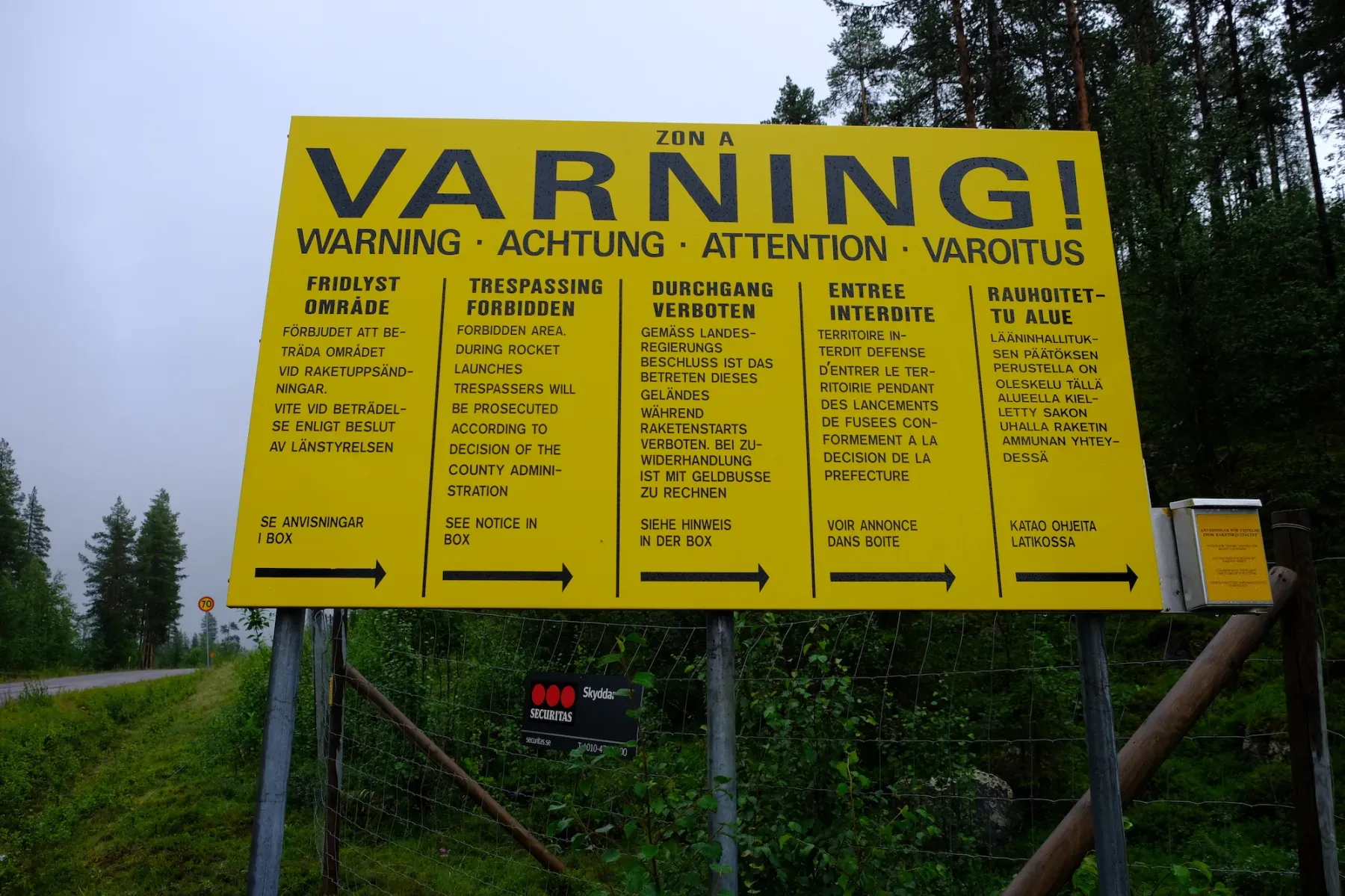 Warning sign when you reach the space center (our image and a clean one from the internet)